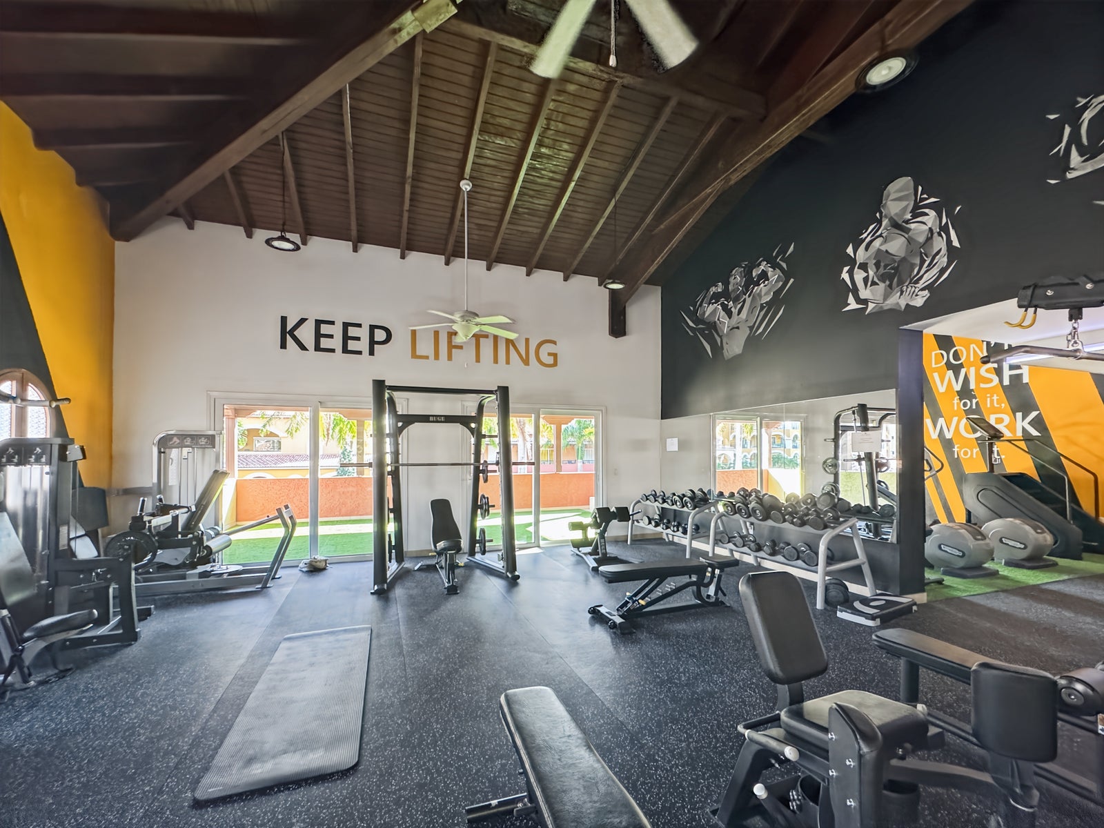 - Tennis court and fitness center